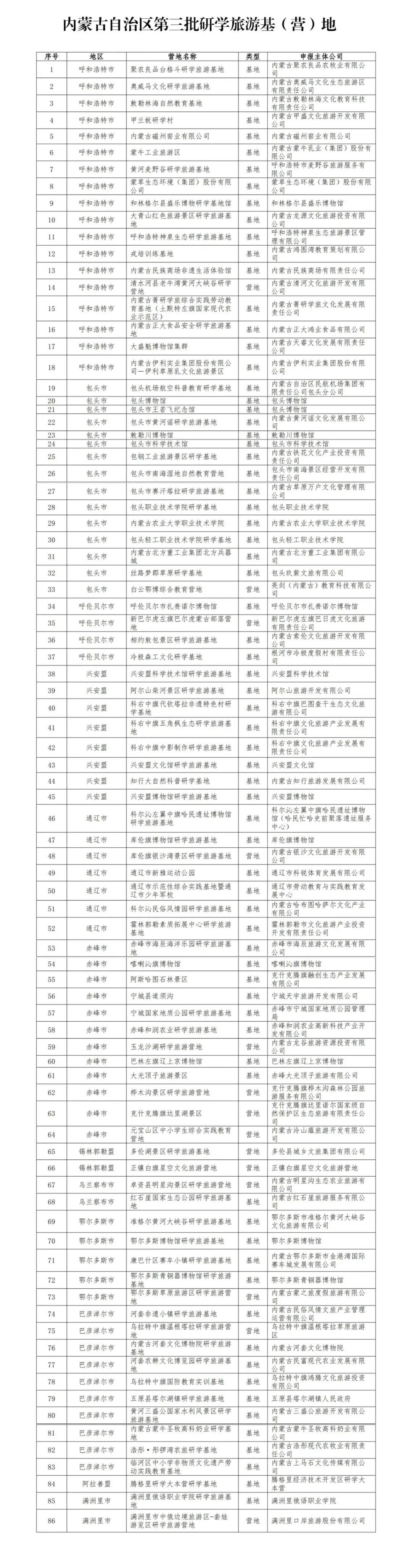 这些名单包括72家研学旅游基地、14家研学旅游营地、20条研学精品线路,以及40门研学精品课程,为内蒙古研学旅游的发展奠定了坚实基础。