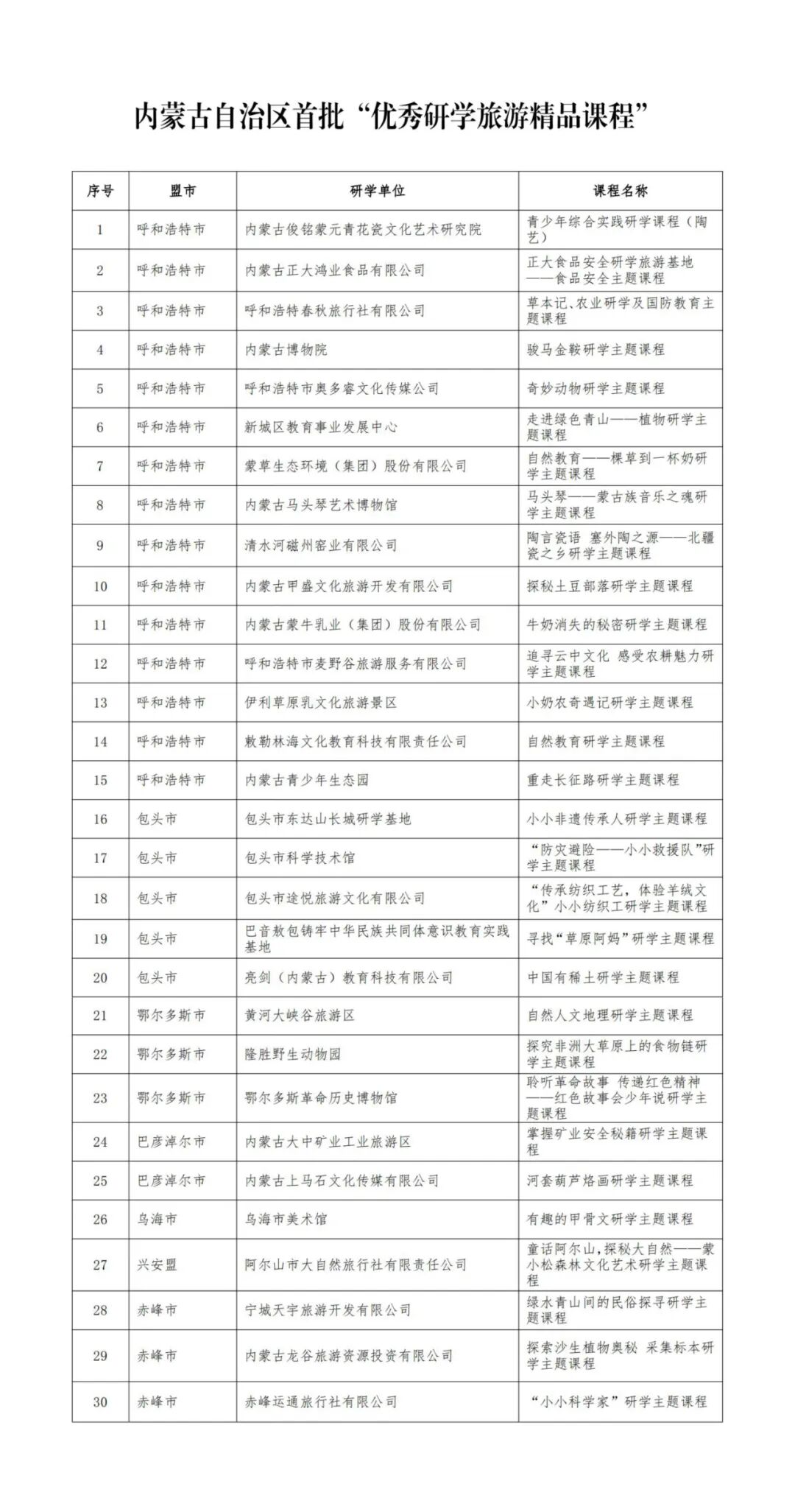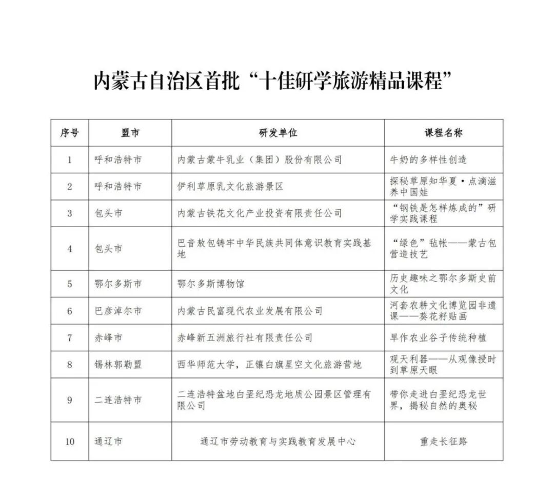 在“5·18中国博物馆日”与“5·19中国旅游日来临之际,内蒙古自治区文化和旅游厅在官方网站公布了一系列研学旅游相关名单,标志着在推动文化传承与经济增长的双重战略下,内蒙古研学旅游版图的初步形成。