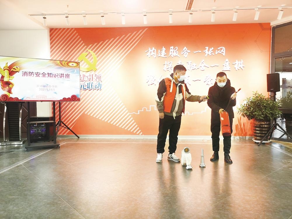 近日,海区滨河街道邀请辖区专业人员开展了消防安全知识讲座,讲解了如何在火场灭火、逃生自救,并指导现场人员正确使用消防器械。 (作者:张楚研;编辑:段继文)
