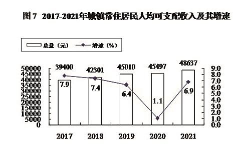城乡常住居民收入继续增加。全市全体居民人均可支配收入48280元,比上年增长7.0%。按常住地分,城镇常住居民人均可支配收入48637元,比上年增长6.9%;农村牧区常住居民人均可支配收入23797元,比上年增长9.1%。