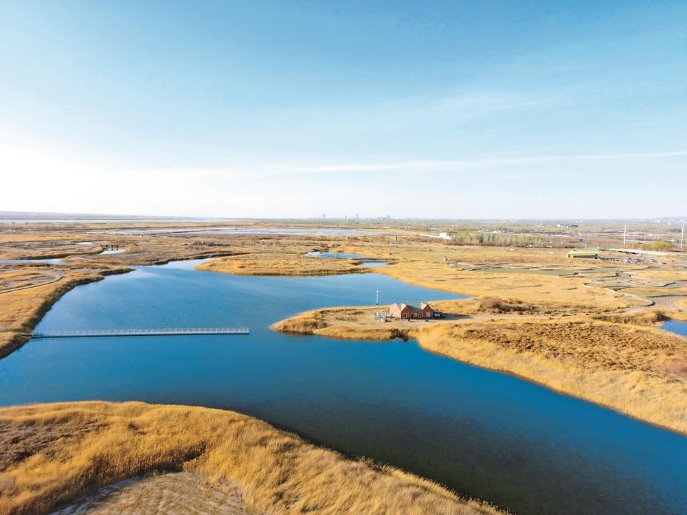【美丽乌海】 近日,在蓝天白云的映衬下,龙游湾国家湿地公园里清澈的湖水与茂盛的芦苇交相辉映,构成了一幅唯美的生态画卷,吸引了市民前来游玩参观。(作者:王超;编辑:段继文)