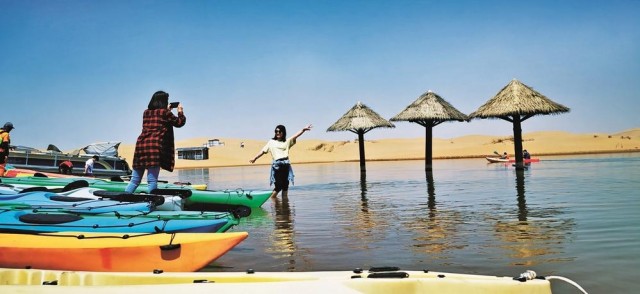 随着山水天边沙滩、兰亭码头游客服务中心等配套设施日渐完善,户外烧烤服务、船艇水上设施、沙漠越野项目等越来越丰富,吸引着越来越多的游客,营造出了十分活跃的旅游氛围。