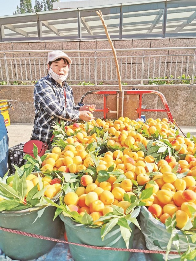 早市里挤满了形形色色的人们,他们有的刚晨跑完路过买上一些水果,有的送孩子上学后顺便挑选一下午饭的食材,更多的是老年人,拉着小车走在街道上,对老伴儿说:“一会儿我们买点苹果。”