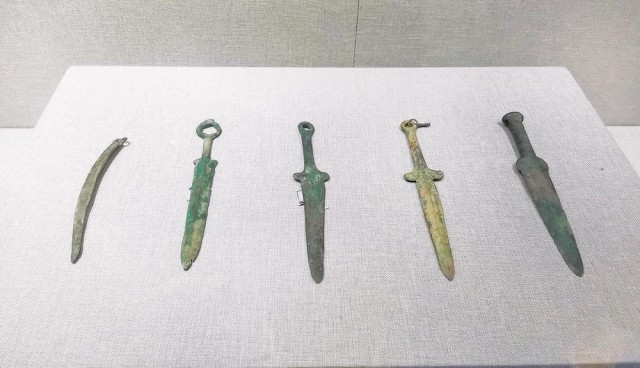 乌海博物馆内展出的“鄂尔多斯(式)”青铜刀剑