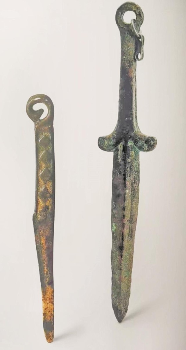 环首带链青铜剑 鹿首菱形纹柄青铜刀