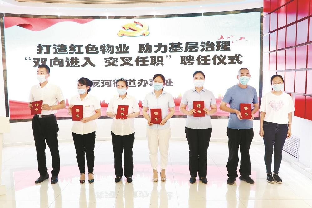 近日,海区滨河街道党工委举办了“双向进入、交叉任职”聘任仪式。街道各社区党委书记为辖区物业企业管理人员颁发“兼职委员”聘书。滨河街道党工委将全力推动“双向进入、交叉任职”机制落地见效,不断完善优化物业管理和服务,全力打造“红色物业”的好品质、新形象,提升群众幸福感和满意度。 (作者:黄建飞;编辑:段继文)