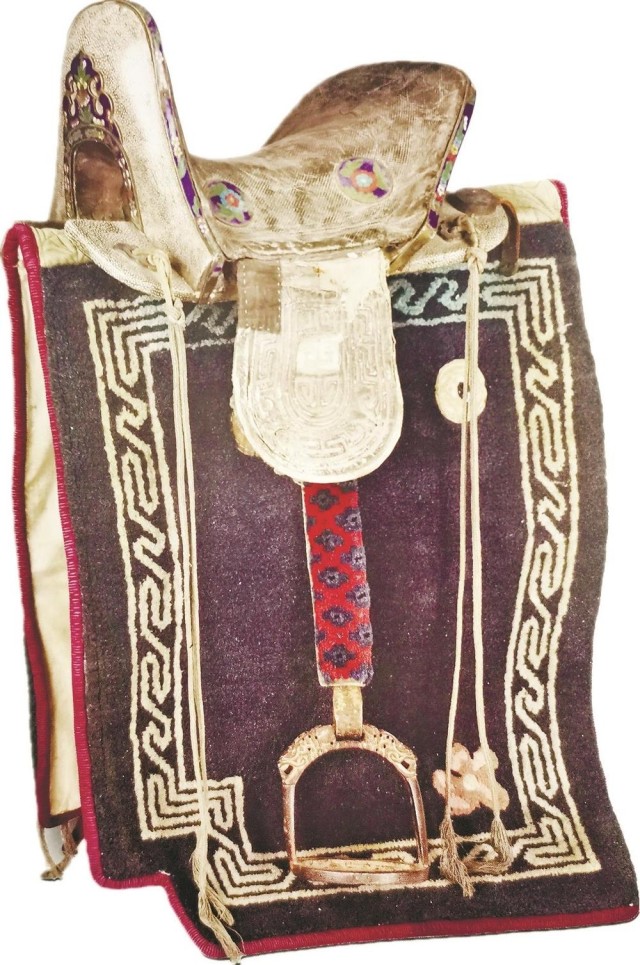 市博物馆里的这两个马鞍点缀的景泰蓝工艺就大大地丰富了其观赏性,不仅工艺精美,也是汉文化艺术与蒙古族艺术相融合的结晶。