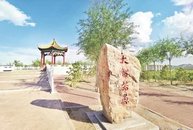 在公园建设过程中,海南区坚持因地制宜的治理原则,建设了如沙滩游乐场、场地景观石等。据了解,沙滩游乐场原本是焦化厂焦炉拆除后遗留的深坑,通过分析论证,最终决定建设成沙滩游乐场。施工人员从乌兰布和沙漠运回细沙进行回填,同时争取到自治区体育局的支持,投放了很多沙滩健身器材,高标准建设完成了这座沙滩游乐场。工作人员清理固体废弃物时发现不少形状各异的石头,邀请我市书法家为石头题词,经过雕刻成为公园步道两侧、树下林间的景观石,为公园增加了艺术色彩。
