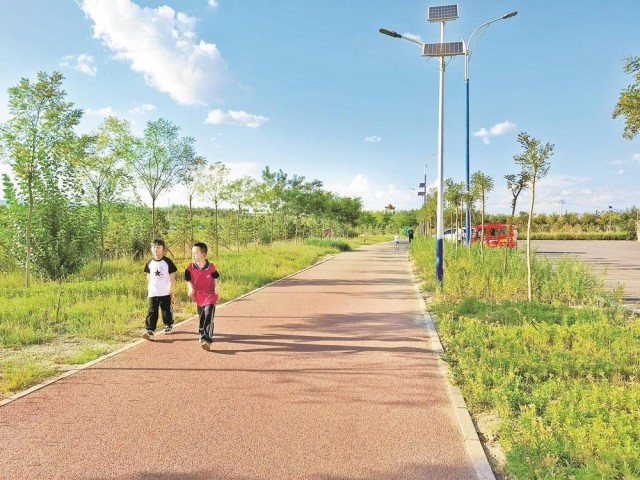 通过不间断地绿化、硬化和美化,昔日的采煤沉陷区已逐渐变身绿树成荫的公园,服务周边多个小区的居民。日暮时分,人们携老带幼,前来公园散步玩耍、锻炼健身。