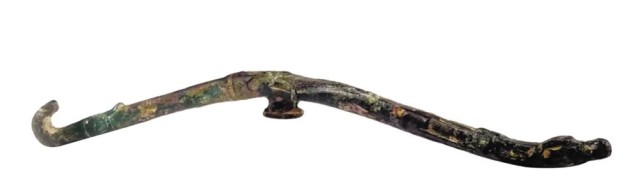 带钩也是很实用的东西,除装在革带的顶端用以束腰外,还可以装在腰侧用以佩刀、佩剑、佩镜、佩印或佩其他装饰物品。