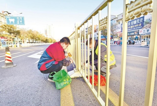 “每隔5片护栏就有一个中间书写着行书‘乌’的护栏。”施工负责人王庆说,这样的护栏颇具乌海特色,既有体现书法之城的书法元素,也有代表乌海的“乌”字,怎么看都高端、大气、上档次。