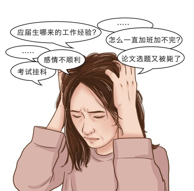“怎么一直加班加不完?”“论文选题被毙了,一天的好心情都没了。”“ 我堂堂一介应届生,哪里来的工作经验嘛!”……社交平台上,年轻人“晾晒”着自己的焦虑,工作不开心、感情不顺利、考试挂科、体重上升。