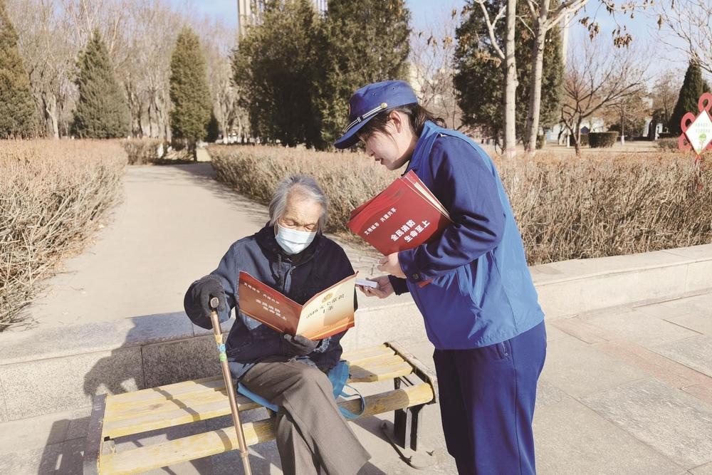 近日,乌达区消防救援大队开展消防安全宣传志愿服务活动。图为消防志愿者向市民宣传用火用电用气安全常识。 (作者:黄建飞;编辑:段继文)