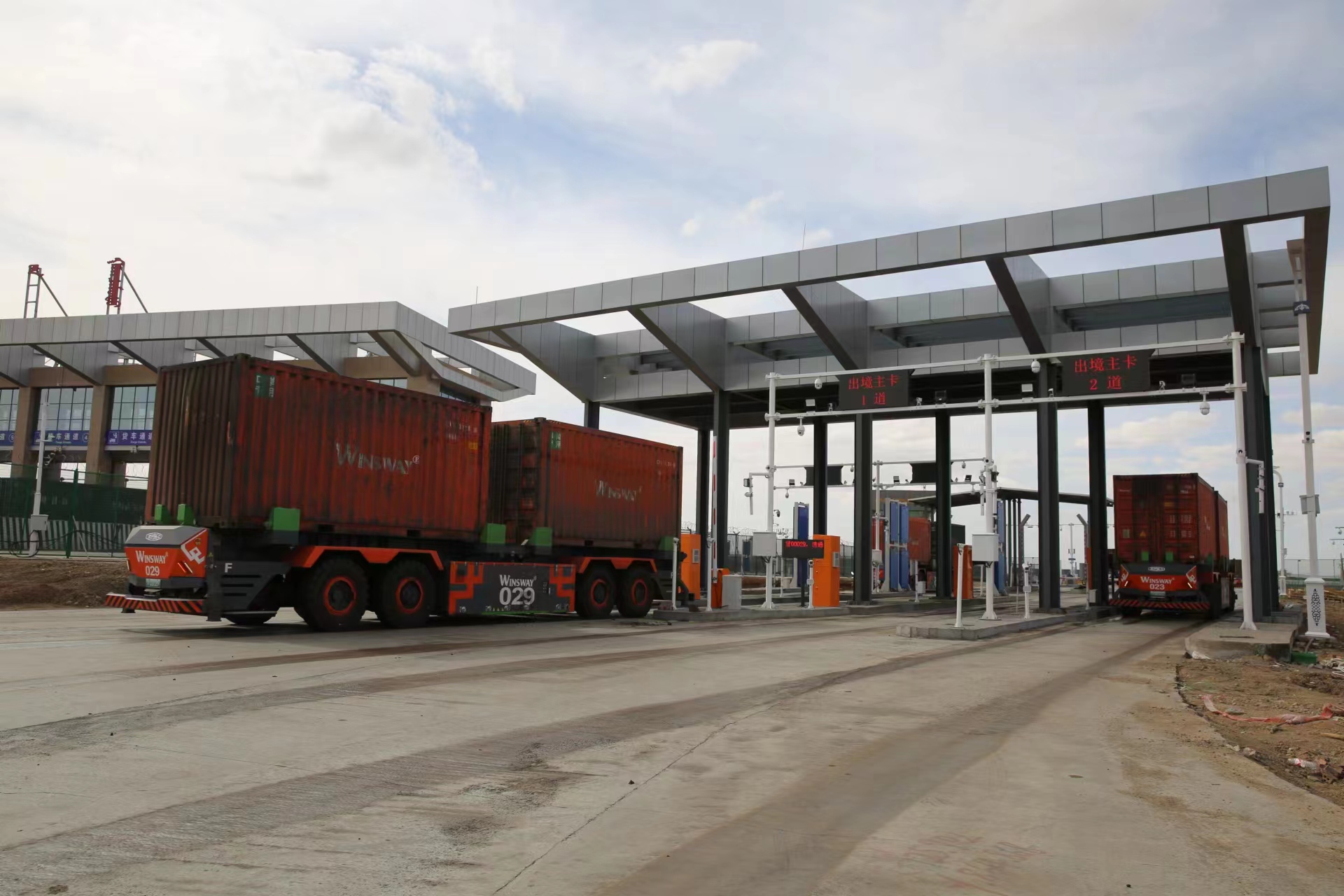 AGV无人驾驶车从甘其毛都口岸自动通关。通讯员 陈东摄