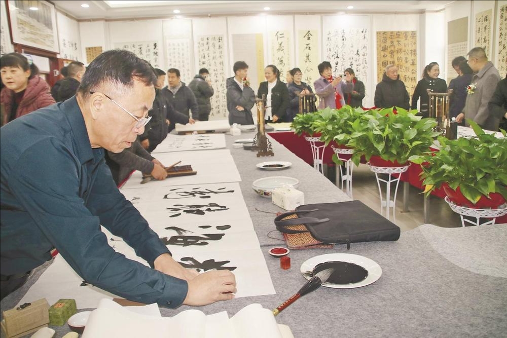 12月6日,由市冀商联合会成立的乌海燕赵书画院举行首届书画笔会。书画爱好者现场挥毫泼墨,交流创作心得。 (韩建慧 摄)
