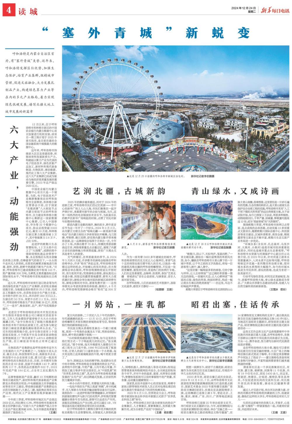 呼和浩特是内蒙古自治区首府,有“塞外青城”美誉。近年来,呼和浩特发挥区位优势,加强生态保护,培育产业集群,做精城市管理,促进文旅融合,大力发展乳制品产业,构建绿色算力产业等在内的多元产业格局,着力实现绿色低碳发展,谱写北疆大地上城市发展的新篇章。