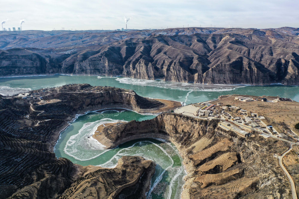 这是12月18日从呼和浩特市清水河县拍摄的黄河老牛湾。新华社记者 连振 摄
