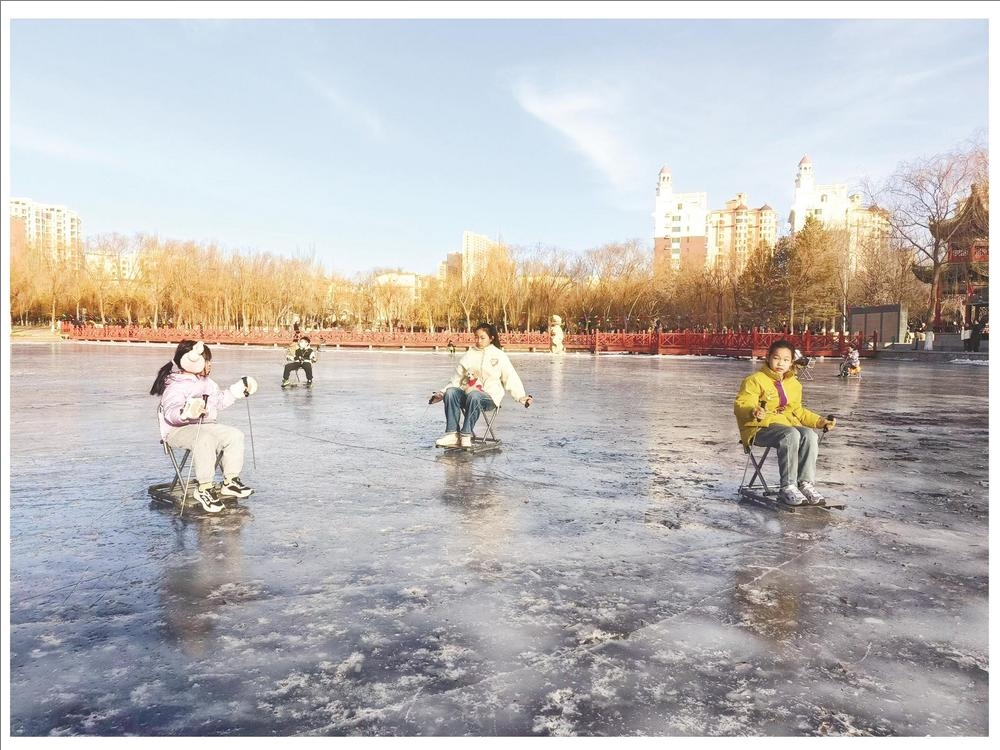 1月20日,小朋友们在市人民公园冰场滑冰。近日,天气晴好,不少家长带着孩子走出家门,享受滑冰带来的乐趣。 (刘春霞 摄)