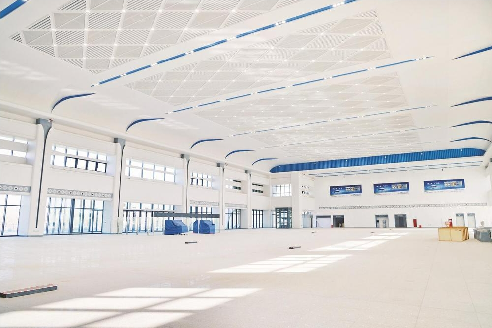 乌海站是包银高铁全线最大的新建站,站房整体设计为雄鹰展翅造型,地上2层、地下1层。站场设计规模4站台11线,其中1、2站台为高速站台,3、4站台为普速站台。截至目前,高铁乌海站站房装修完成98%,站台雨棚装修完成60%。包银高铁全线建成后,将充分满足内蒙古、宁夏等地旅客出行需求,对完善国家高速铁路网布局等具有重要意义。图为高铁乌海站候车大厅。(高瑞鹏 摄)