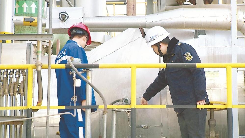 为打好安全风险防范主动仗,市应急管理局深入企业开展安全生产专项检查,今年以来累计开展督导检查33次,发现安全隐患200余项,有效防范和遏制安全事故的发生。图为近日市应急管理局工作人员在国能乌海硝铵有限责任公司,详细了解企业安全措施落实情况。 (肖传军 摄)