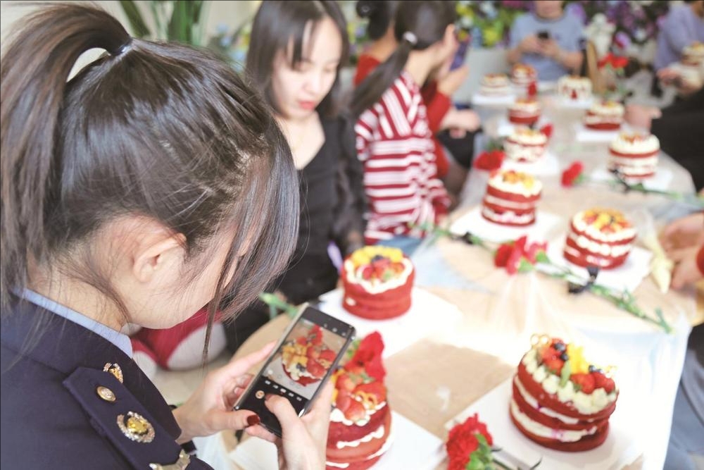 日前,乌海高新技术产业开发区税务局组织开展“甜蜜有约 ‘焙’感幸福”蛋糕 DIY 制作活动,展现女性税干热爱生活、积极向上的风采。 (刘春霞 摄)