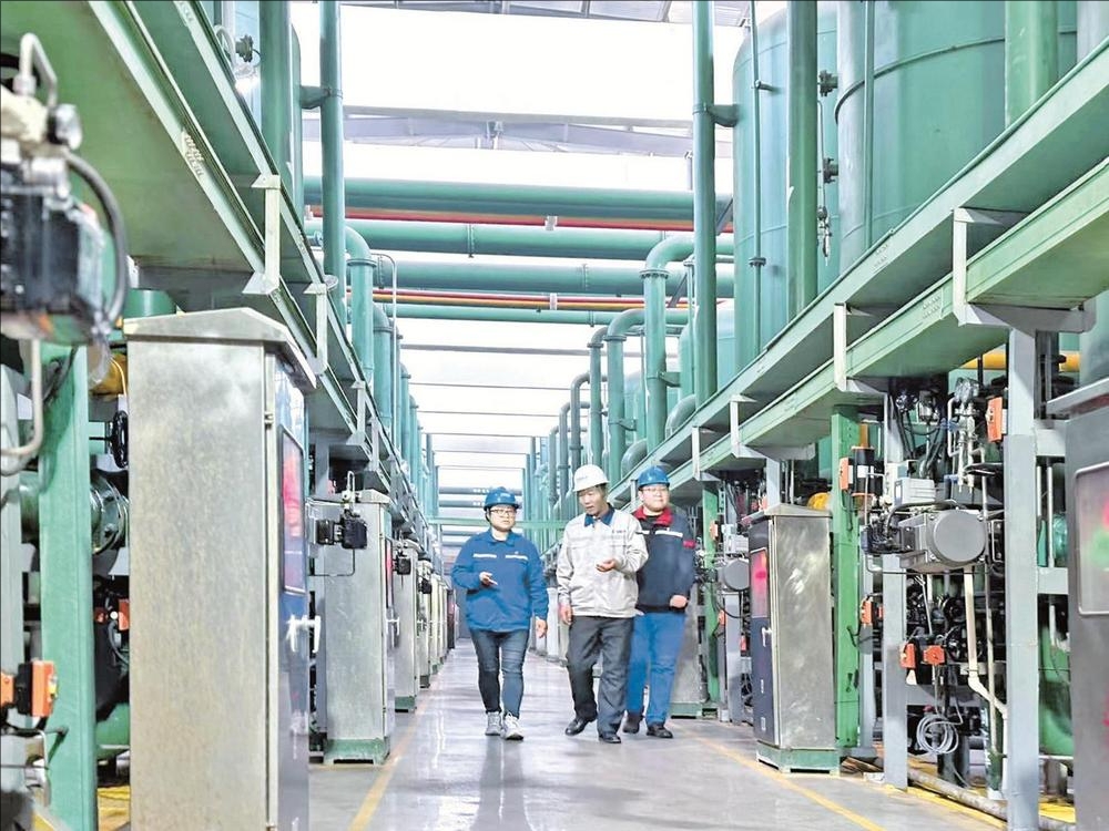 内蒙古东源科技集团有限公司积极落实我市节水控水工作要求,改进污水处理工艺,以“绿色脱盐”节水技术替代“传统双膜”节水技术,大幅提升水资源循环利用率,实现了经济效益和社会效益的双赢。图为3月18日工作人员在巡检节水设备。(曹艺 摄)