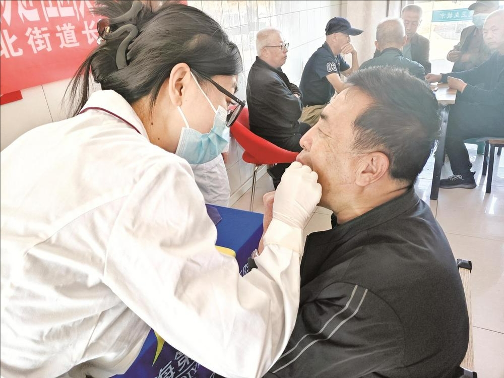 为提高居民健康管理意识,倡导和推进健康生活方式,提升全民健康水平,日前,海勃湾区海北街道长青东社区联合乌海市第一口腔医院开展“感党恩、听党话、跟党走”健康义诊进社区、关爱行动惠民心活动。 (陈洋 摄)