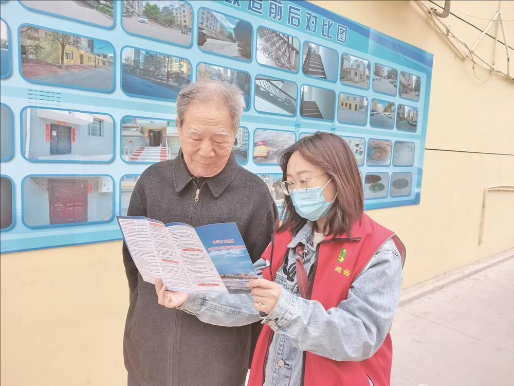 5月是“民族政策宣传月”,海勃湾区海北街道长青东社区紧扣铸牢中华民族共同体意识主线,社区工作人员通过与居民面对面交流,发放宣传资料,以通俗易懂、深入浅出的语言普及民族理论政策知识,促进各民族群众交往交流交融,营造出浓厚的民族团结氛围。 (陈洋 摄)