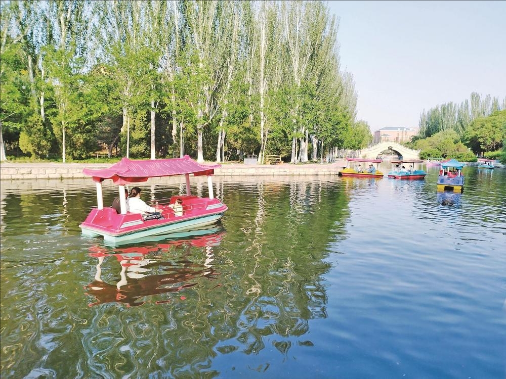 夏日的乌海,处处生机盎然。不少市民在市人民公园休闲漫步,泛舟湖上,观景游园,感受美好时光。                 (肖传军 摄)