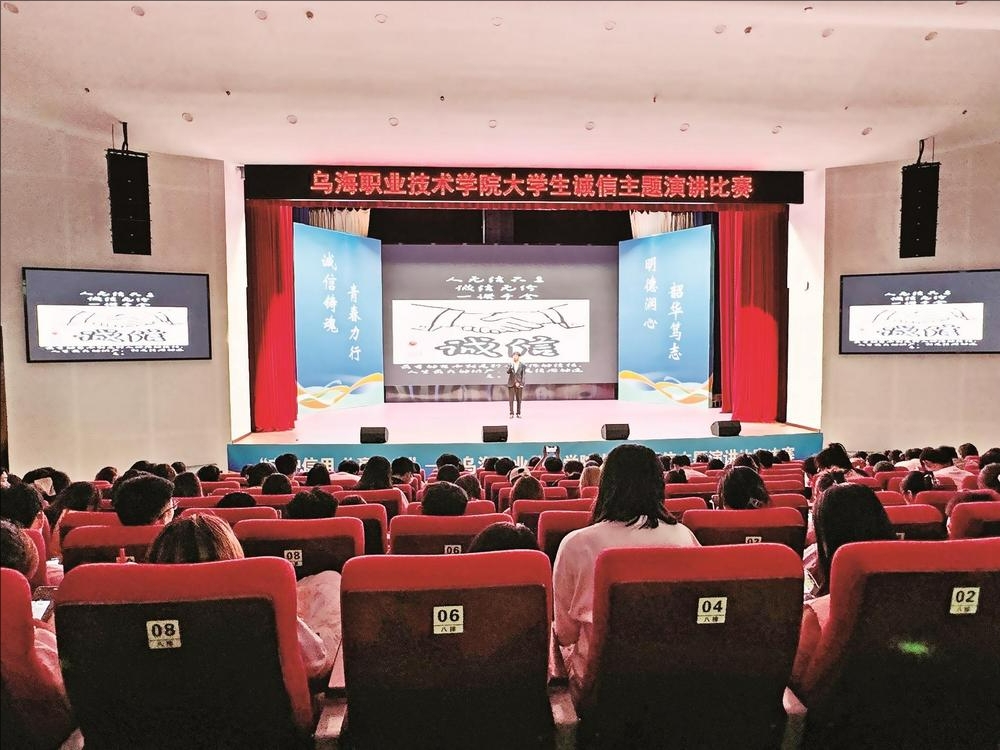 6月12日,由中国人民银行乌海市分行、乌海职业技术学院共同举办的“守护信用 共赢未来”大学生诚信主题演讲比赛开赛,旨在让青年学子用声音传播信用,以故事诠释诚信力量。 (段维娜 摄)