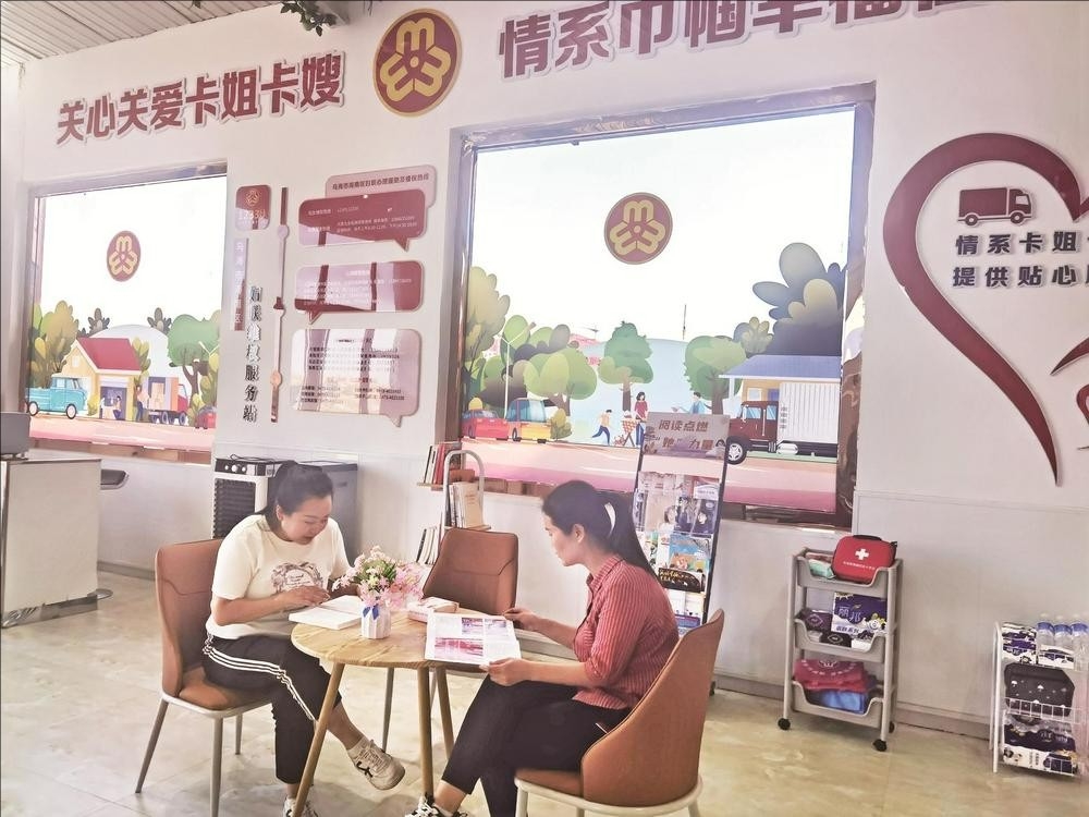 记者看到,“卡姐卡嫂之家”被划分为暖“新”角、生活服务区、健身娱乐区、阅读角、维权服务站等多个区域,配备有微波炉、急救箱、书籍杂志、女性日用品等,既能为临时停靠的卡姐卡嫂提供歇脚之处,也成为卡姐卡嫂交流互助的温馨港湾。