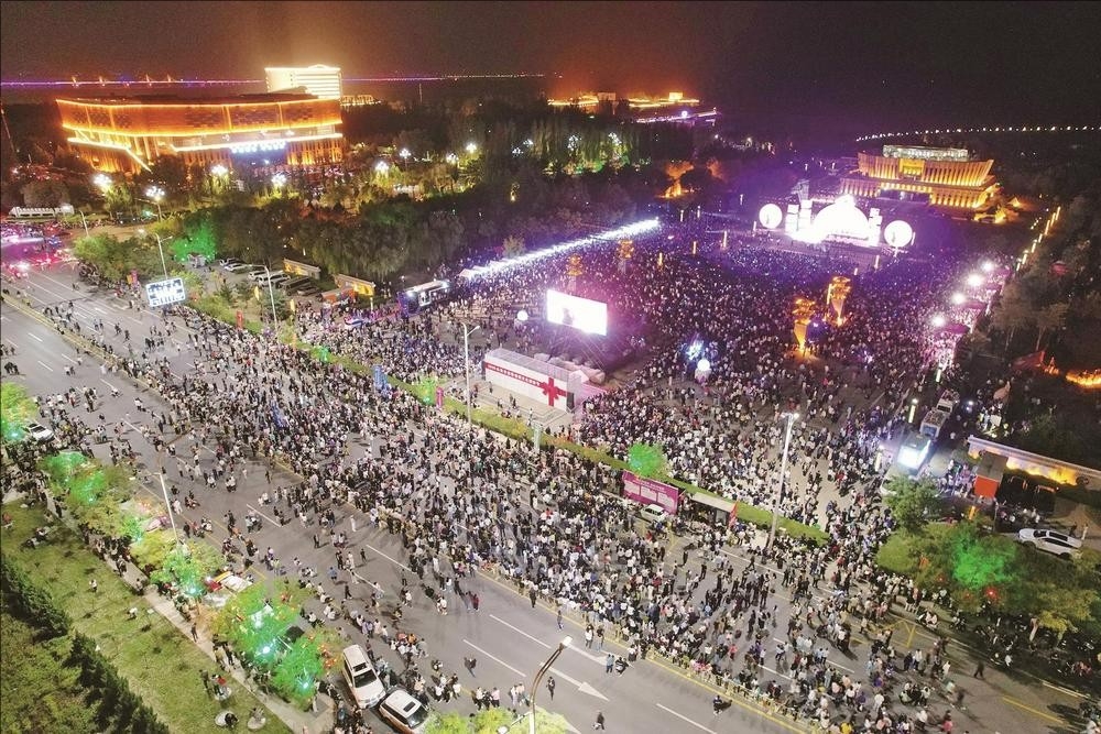 本届文化旅游节将“沉浸式体验”贯穿始终,宣传展示、文化体验、产品展销和文化旅游精彩纷呈,吸睛不断,引发共鸣。开幕式上,歌舞表演、华服秀、高空威亚与无人机编队演出接连呈现,以夜空为幕,展示城市文化地标,绚烂烟花秀将现场气氛推向高潮。闭幕式上,“乌海文旅推荐官”授牌和经销商战略签约相继举行,乐队演出带动全场互动,气氛热烈。据统计,活动现场人气高涨,人流量突破5万人次,有效拉动了本地消费。