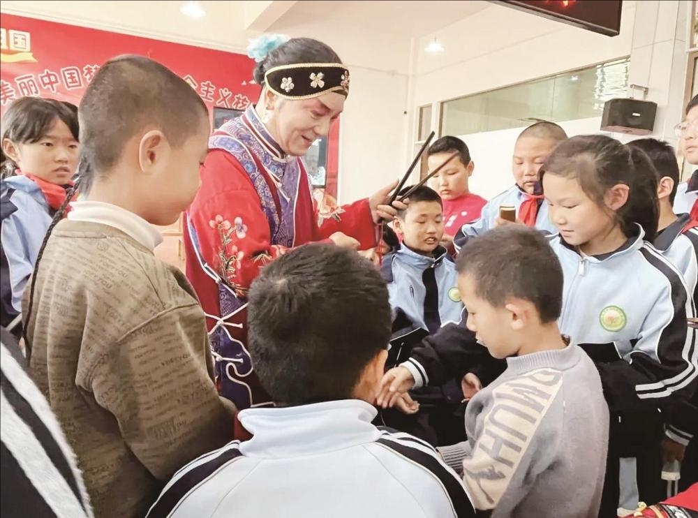 10月27日,由市文化广电事业发展中心组织的非遗文化展示活动在市第二十三中学上演。我市特色非遗项目撸板儿呱嘴代表性传承人袁沛耀向师生们讲解了撸板儿呱嘴的历史渊源、表演形式和文化内涵,并以精湛的技艺和饱满的热情,展示了撸板儿呱嘴的独特魅力,为师生们送去了一场充满传统文化魅力的视听盛宴。(靳婧 摄)