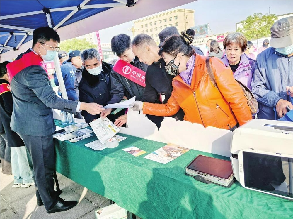 近日,农行乌海分行工作人员在市人民广场开展宣传活动,工作人员通过发放折页、现场答疑等形式,切实提升市民金融安全意识。 (季虹 摄)