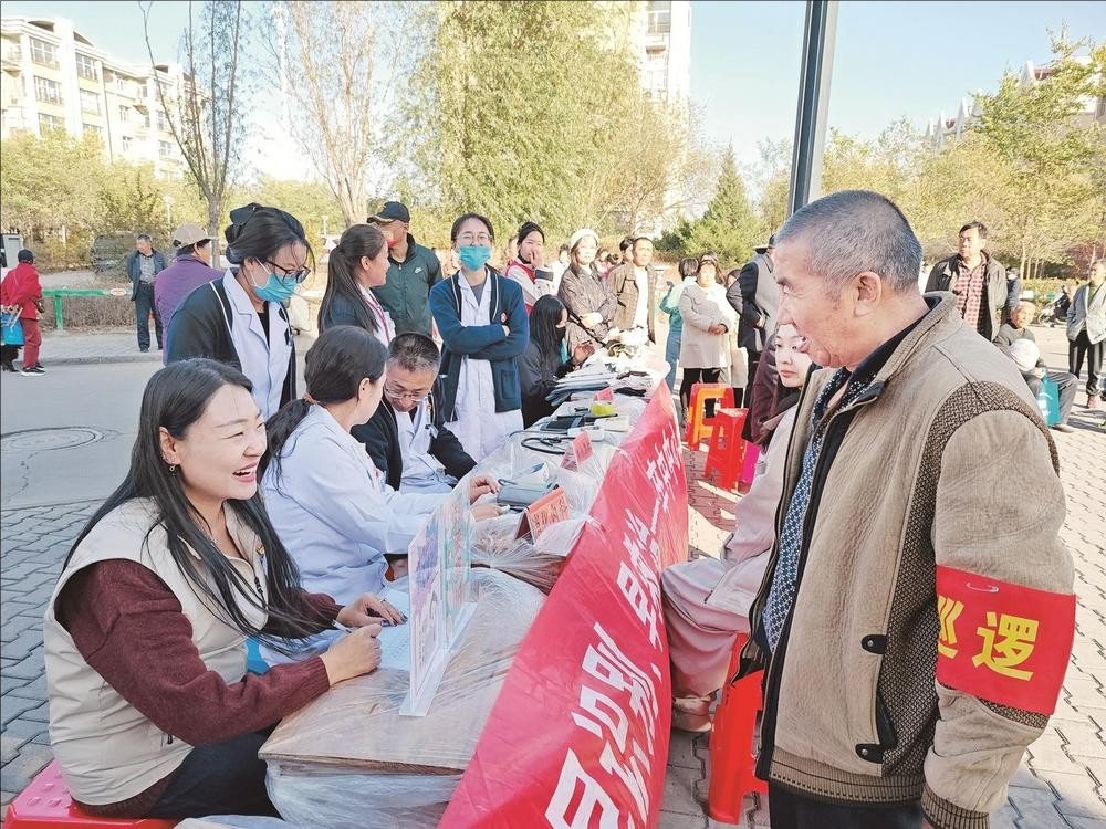 日前,海南区拉僧仲街道康泰社区开展“情暖重阳,爱在邻里”活动,设置包含义诊服务、日用百货、手工艺品义卖、美食品尝的便民集市,既传承尊老敬老传统,又凝聚邻里温情。 (刘春霞 摄)