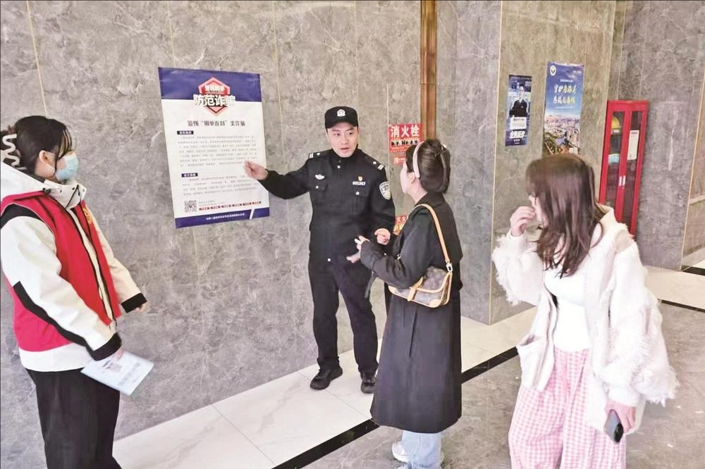 为有效防范电信网络诈骗,切实保护辖区居民财产安全,近日,海勃湾区滨河街道湖东社区联合公安部门开展了防范电信网络诈骗宣传活动。活动中,社区志愿者、网格员和滨河派出所民警来到辖区大型商业综合体,通过发放资料、现场讲解等形式,向居民宣传网络安全、个人信息保护、电信网络诈骗防范措施等内容,并提醒大家注意保护个人信息,不轻信、不汇款,遇到可疑情况要及时和家人朋友沟通并拨打“110”报警电话。 (黄建飞 摄)