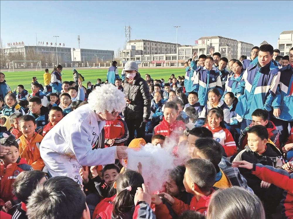 近日,海南区团委联合多家单位共同举办“强国复兴有我 科技筑梦未来”乌海市少年科学院科普进校园活动。活动现场,科普团队成员通过启发式提问、互动式体验和沉浸式参与,让学生们在欢声笑语中领略了科学的无穷魅力。(丁宇婷 摄)