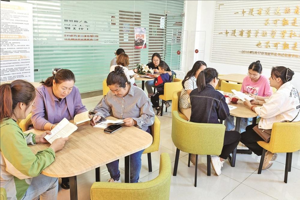 为进一步丰富辖区居民精神文化生活,引导居民养成爱读书、读好书、善读书的良好习惯,近日,海勃湾区滨河街道滨河社区开展了“书香润社区 阅读悦美好”读书分享活动。居民在草原书屋挑选自己喜欢的书籍阅读,并向大家分享书籍的内容和阅读体会。(黄建飞 摄)
