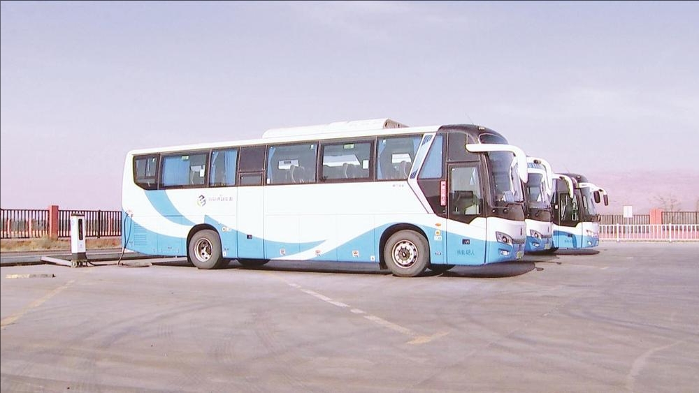 “十四五”期间,我市建成城区充电站107座、重卡充(换)电站69座,布局4个“光伏+充电”一体化项目,3个“光伏+矿区生态治理”项目建成投产,年减排二氧化碳约47万吨。通过政策支持、技术创新和项目落地,让更多绿电“发得出、用得上”。图为在乌海海易通银隆新能源汽车有限公司厂区充电站,不少新能源汽车在这里充电。 (肖传军 摄)