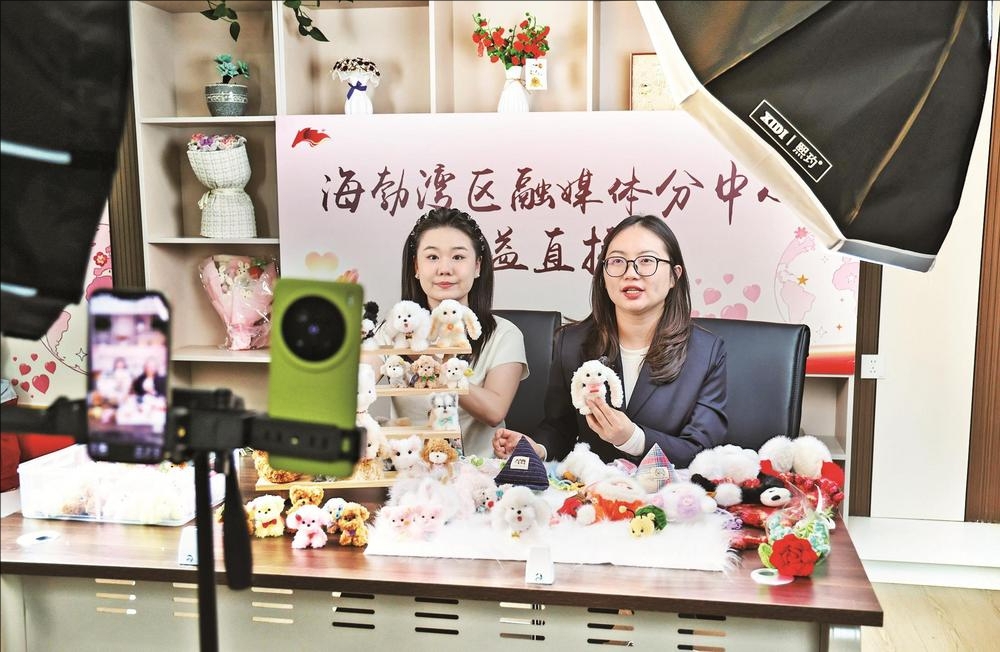 近日,海勃湾区新华社区党群服务中心内暖意融融、活力满满,海勃湾区融媒体分中心在此开展公益直播。此次直播是专为辖区就业困难群体量身定制的灵活就业赋能直播,以“培训+孵化+销售”一体化模式,让编织、掐丝、羊毛毡等传统手工艺成为居民家门口就业的“金钥匙”。 (高瑞鹏 摄)