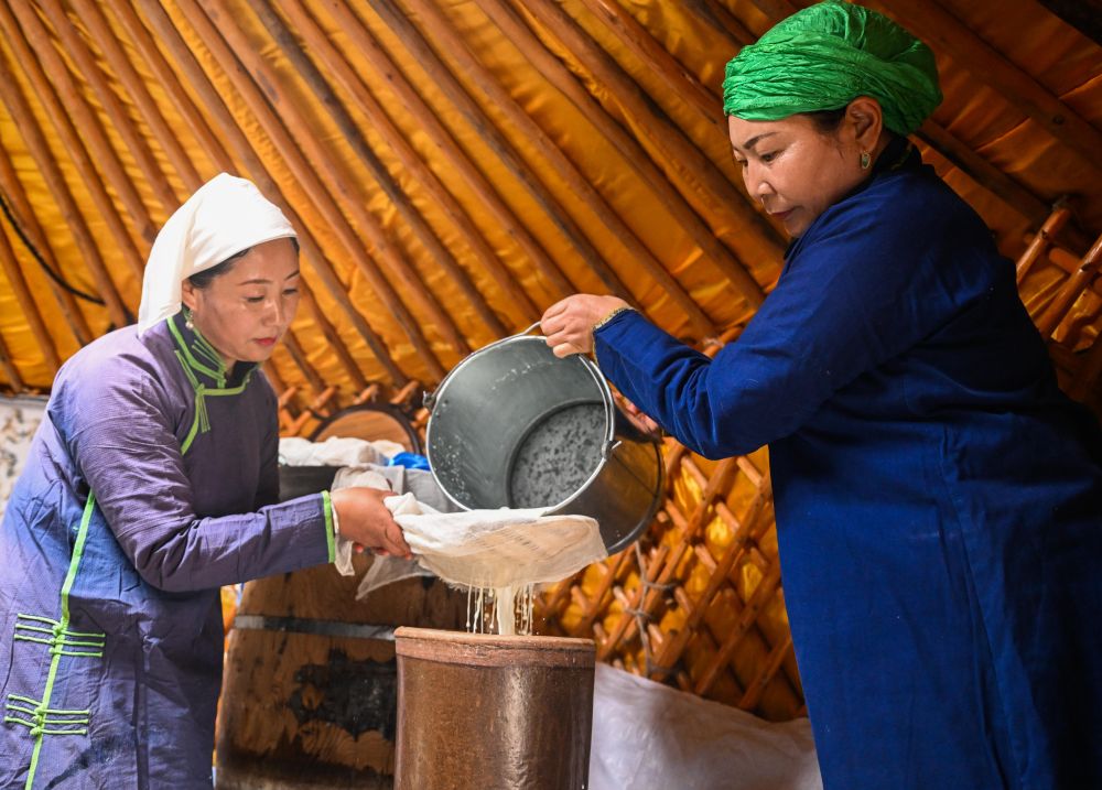 这是在内蒙古锡林郭勒盟正蓝旗拍摄的奶制品制作过程。新华社记者 连振 摄