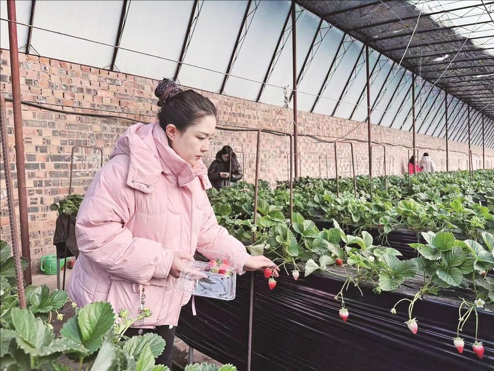 近日,在乌达区乌兰淖尔镇泽园新村的温室大棚里,一颗颗饱满红润的草莓点缀在绿叶间,吸引了众多市民前来体验采摘乐趣。 近年来,乌兰淖尔镇大力发展特色设施农业,草莓种植已成为当地促农增收、助力乡村振兴的亮点产业。这些现代化大棚不仅丰富了市民的“果篮子”,也鼓起了村民的“钱袋子”,映照出产业兴旺、农旅融合的美好生活图景。(王蒙 摄)