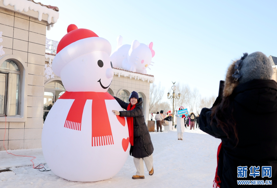 游客体验冰上娱乐项目。新华网 李倩摄