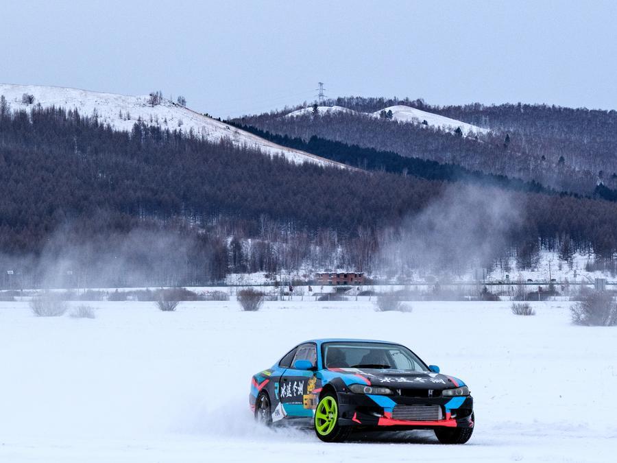 1月8日,在内蒙古呼伦贝尔市牙克石市冰途专业汽车测试基地,车手驾驶车辆在冰面上漂移。新华社记者 马金瑞 摄