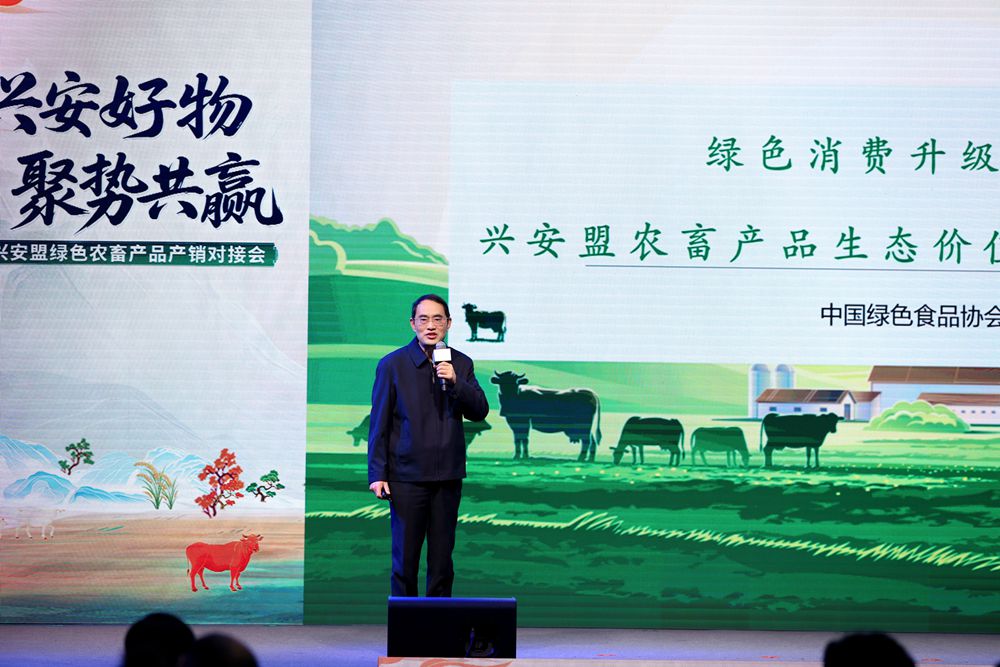 新华网呼和浩特1月18日电(石毅)1月18日,以“兴安好物 聚势共赢”为主题的兴安盟绿色农畜产品产销对接会在扎赉特旗举办。中国绿色食品协会监事长、农业农村部中国绿色食品发展中心原主任张华荣发表题为《绿色消费升级下,兴安盟农畜产品生态价值与品牌提升之路》的主旨演讲,系统阐释兴安盟农畜产品的生态价值优势与品牌发展战略。
