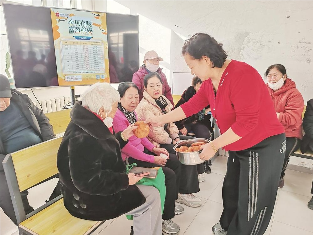 1月16日,海勃湾区林荫街道大庆社区举办“探寻传统年味,共话新春温情”活动,居民们在社区炸油饼、油糕,看精彩节目,喜迎马年新春。 (张楚研 摄)