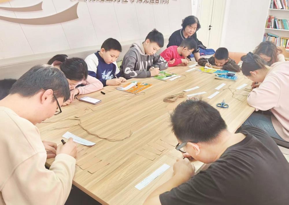 近日,海勃湾区海北街道东山北社区举办“文心少年读书季”活动,通过阅读分享、手工制作等方式,让孩子们了解传统文化, 感受阅读魅力。 (张楚研 摄)