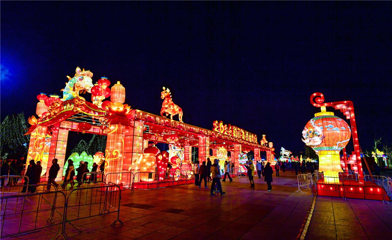游客在通辽市科尔沁区开展的新春灯会上观赏花灯。 张启民 摄