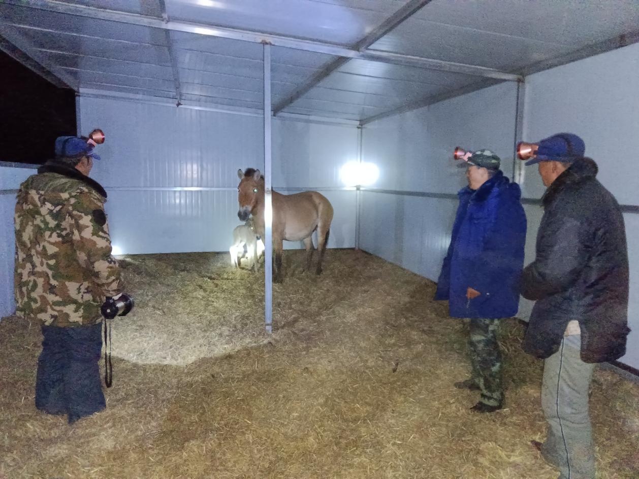 和荒野的温情相伴的,是责任。2022年,普氏野马在大青山产下第一胎,王俊恒和同事们日夜轮守,细心观察小马驹的吃奶、排便等情况,生怕出差错。