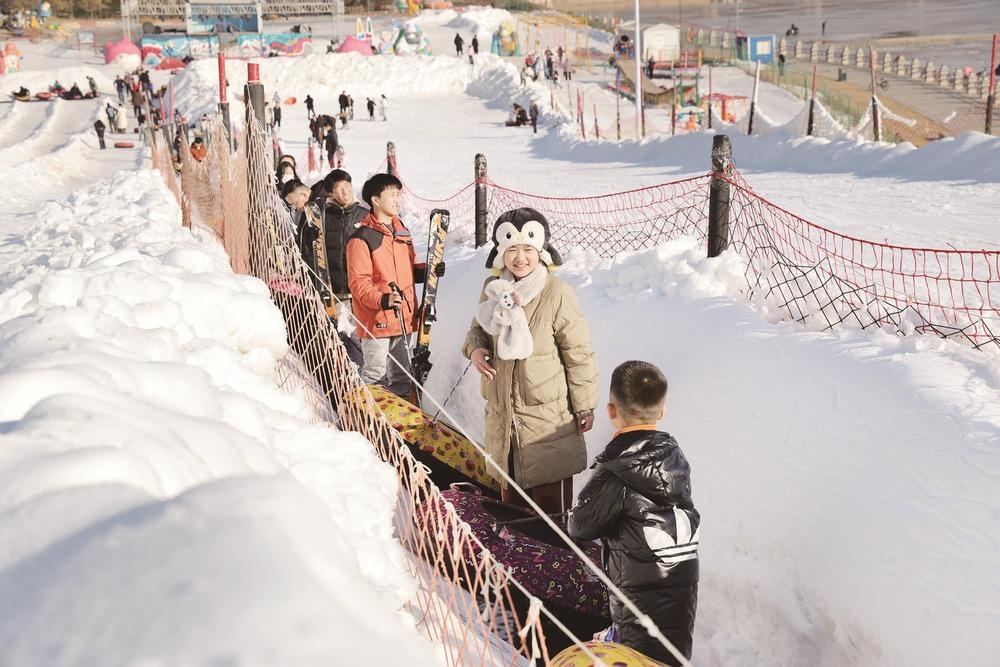 春节期间,乌海冰雪世界为游客增添了无限欢乐。图为沉浸在冰雪世界的游客。 (赵政宇 摄)